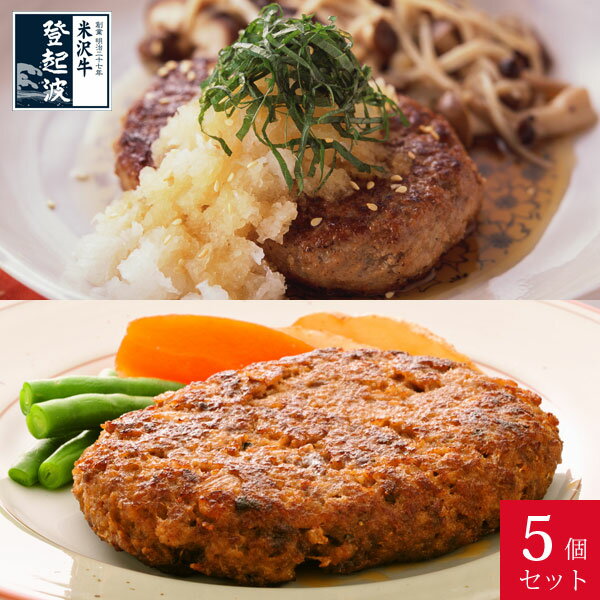 米沢牛+米澤豚一番育ちの黄金比率ハンバーグステーキ150g×2個・米沢牛100%ハンバーグステーキ140g×3個 合計5個セット【牛肉】【豚肉】【化粧箱入り】
