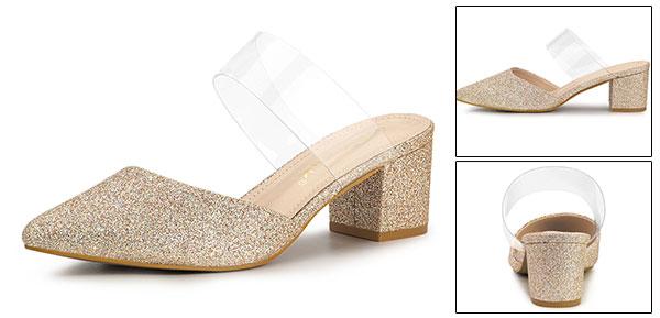 ソウテン クリア ミュール シューズ ポインテッドトゥ ブロックヒール ローヒール レディース ゴールド 22.5cm