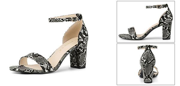 ソウテン アンクルストラップ サンダル チャンキーヒール スネークプリント レディース ブラックスネーク 24.0cm
