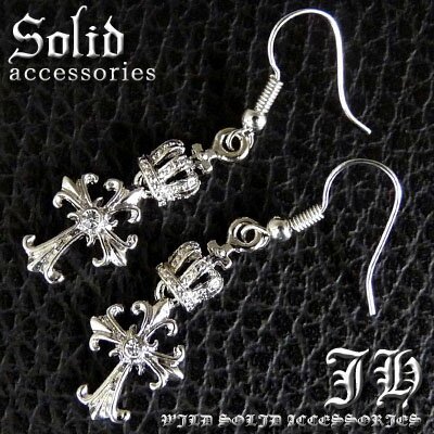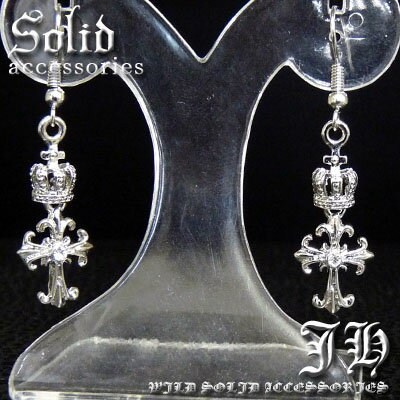 【cp138】 送料無料 新型 1個売り クロスクラウン型 シルバーTIPEフックピアス プラチナRG加工sv仕様 お兄系 王冠